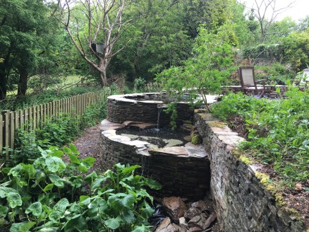 Now, when it rains, our obsession with water levels has been transferred from the pond at the bottom of the field to the one in our garden. A heavy rain shower will see us excitedly trooping down the garden to enjoy the spectacle of water cascading from pond to pond. We really should get out more…….